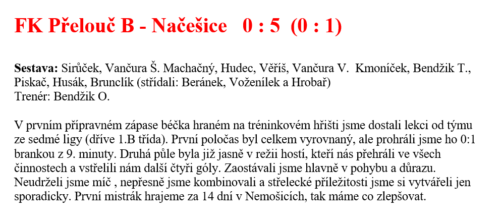 Příprava: A mužstvo – Kutná Hora 3 : 3