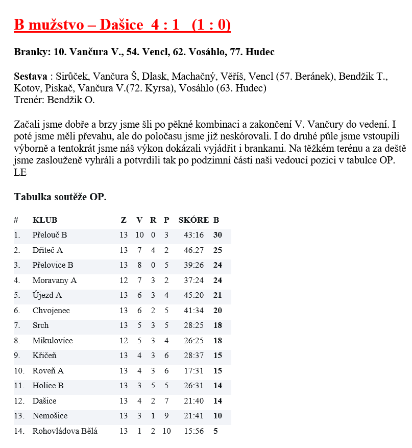 B mužstvo – Srch 3 : 0