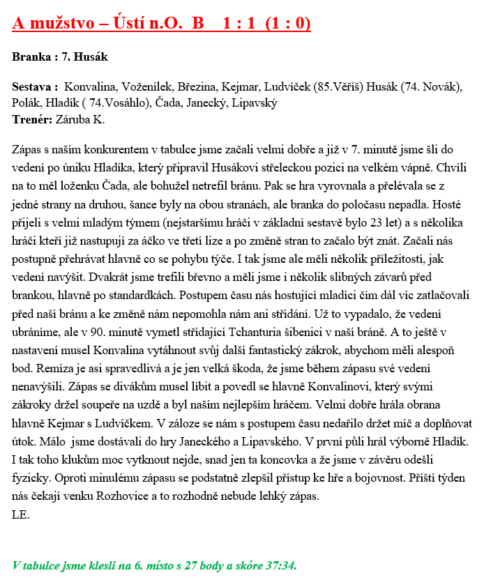 B – Mužstvo